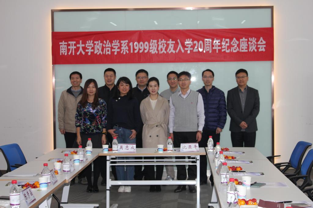 2019年11月23日,来自全国各地的十余名1999级政治学系校友齐聚母校南开,参加入学20周年纪念座谈会。久别的校友们欢聚一堂,共叙同学情、师生情、南开情。中共中央党校国际战略研究院副院长吴志成教授、91国产