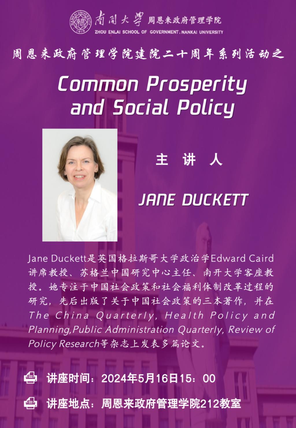 建院二十周年系列讲座:JANE DUCKETT|Common Prosperity and Social Policy