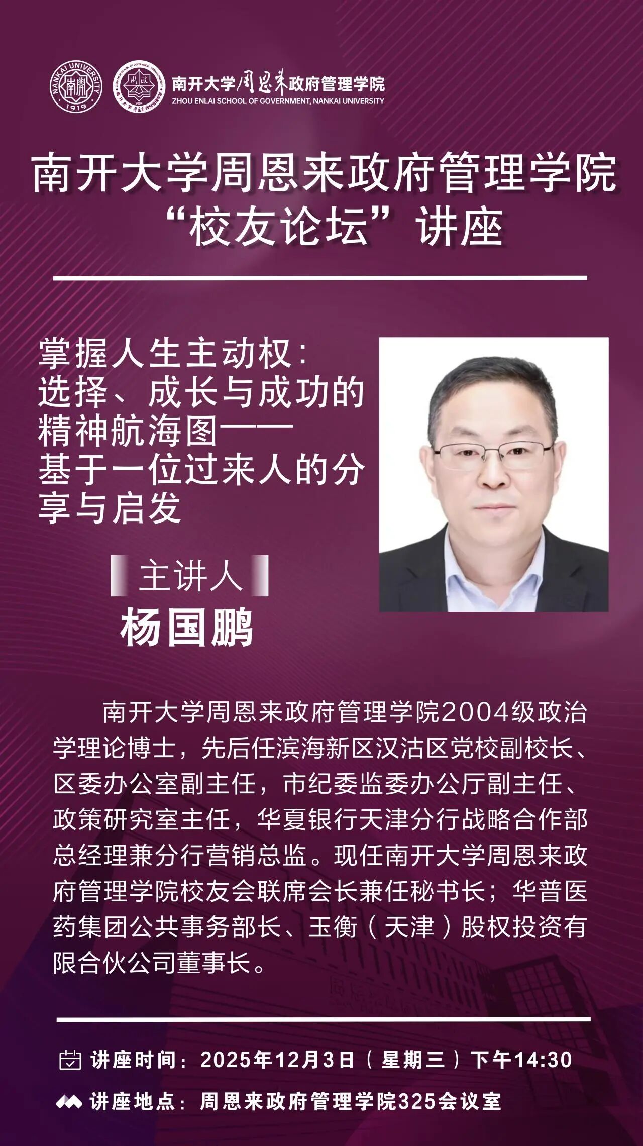 校友论坛讲座|掌握人生主动权选择、成长与成功的精神航海图——基于一位过来人的分享与启发