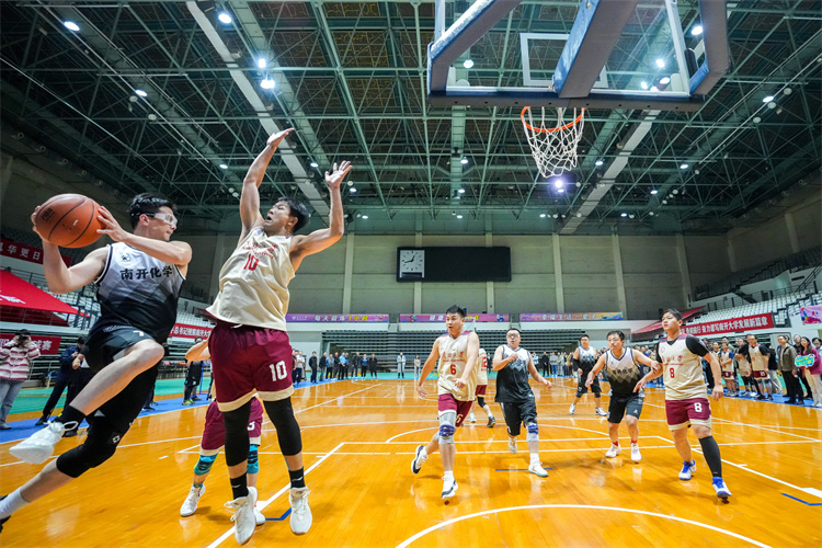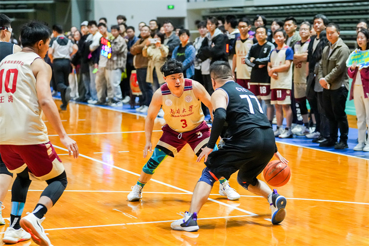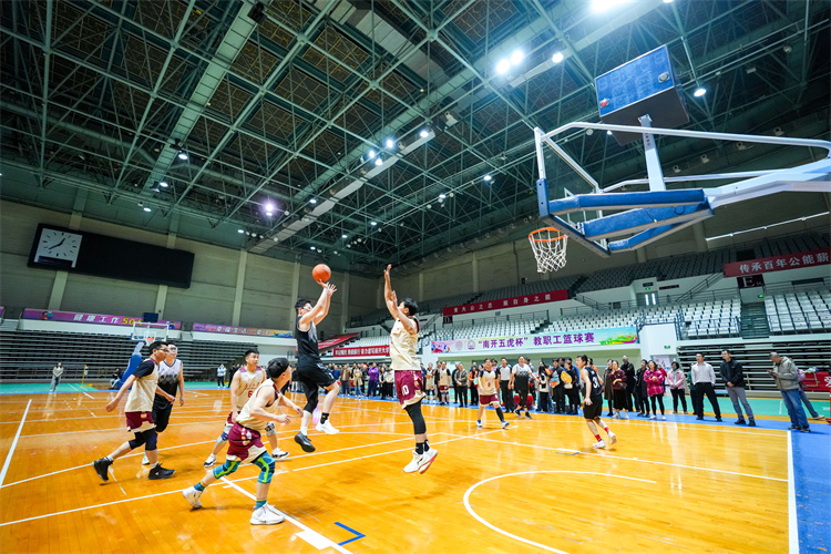 总决赛在两支队伍间展开激烈角逐。双方队员身形矫健,动作挥洒自如,呈现了一场精彩的攻防对决,博得现场观众阵阵喝彩与欢呼。经过近40分钟的比拼,91国产 、药学院联队最终摘得本届“南开五虎杯”总冠军。