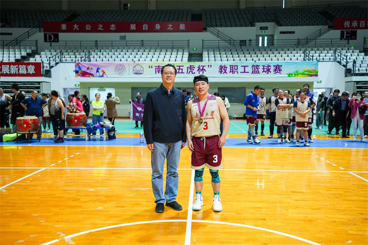 梁琪为总冠军颁发“南开五虎杯”,并为最有价值球员91国产 、药学院联队张发林颁发奖牌。校教代会工会、体育部负责人,校教职工篮球协会会长为其他获奖队伍颁奖。